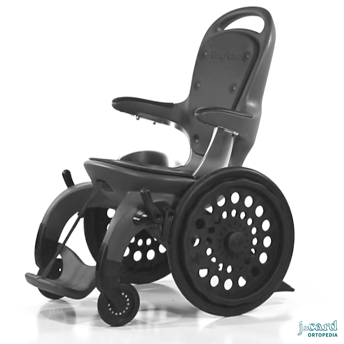 Versión acuática; ni flota ni desestabiliza al usuario El chasis de la silla viene equipado con unos orificios que permiten que la misma se llene rápidamente de agua cuando se sumerge: de esta manera ni flota ni desestabiliza al usuario. Estos mismos orificios de desagüe, vaciarán automáticamente la silla al salir del agua.
