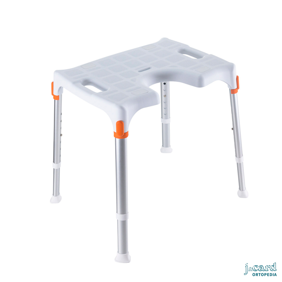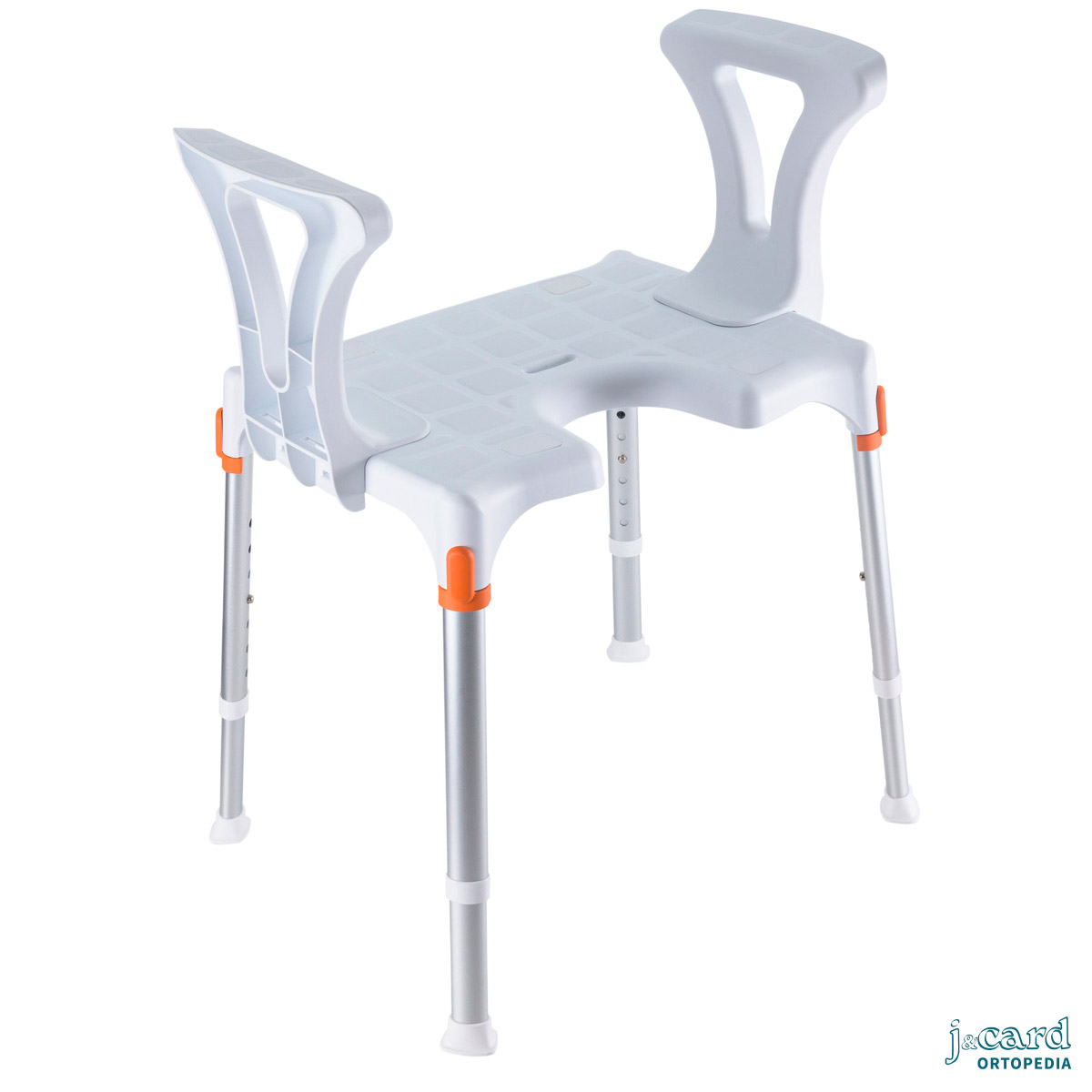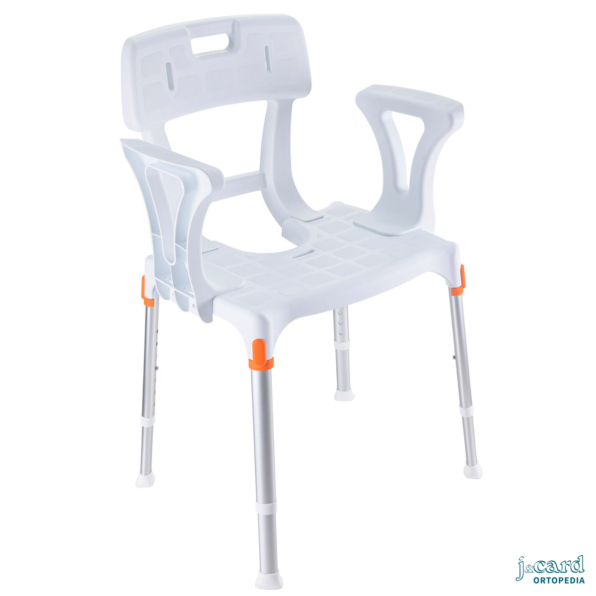 Silla de ducha fabricada en aluminio, resistente y totalmente inoxidable. Muy ligera y fácil de maniobrar. Pensada para facilitar las tareas de higiene personal: se puede colocar directamente encima del inodoro o bien utilizar la cubeta (opcional).