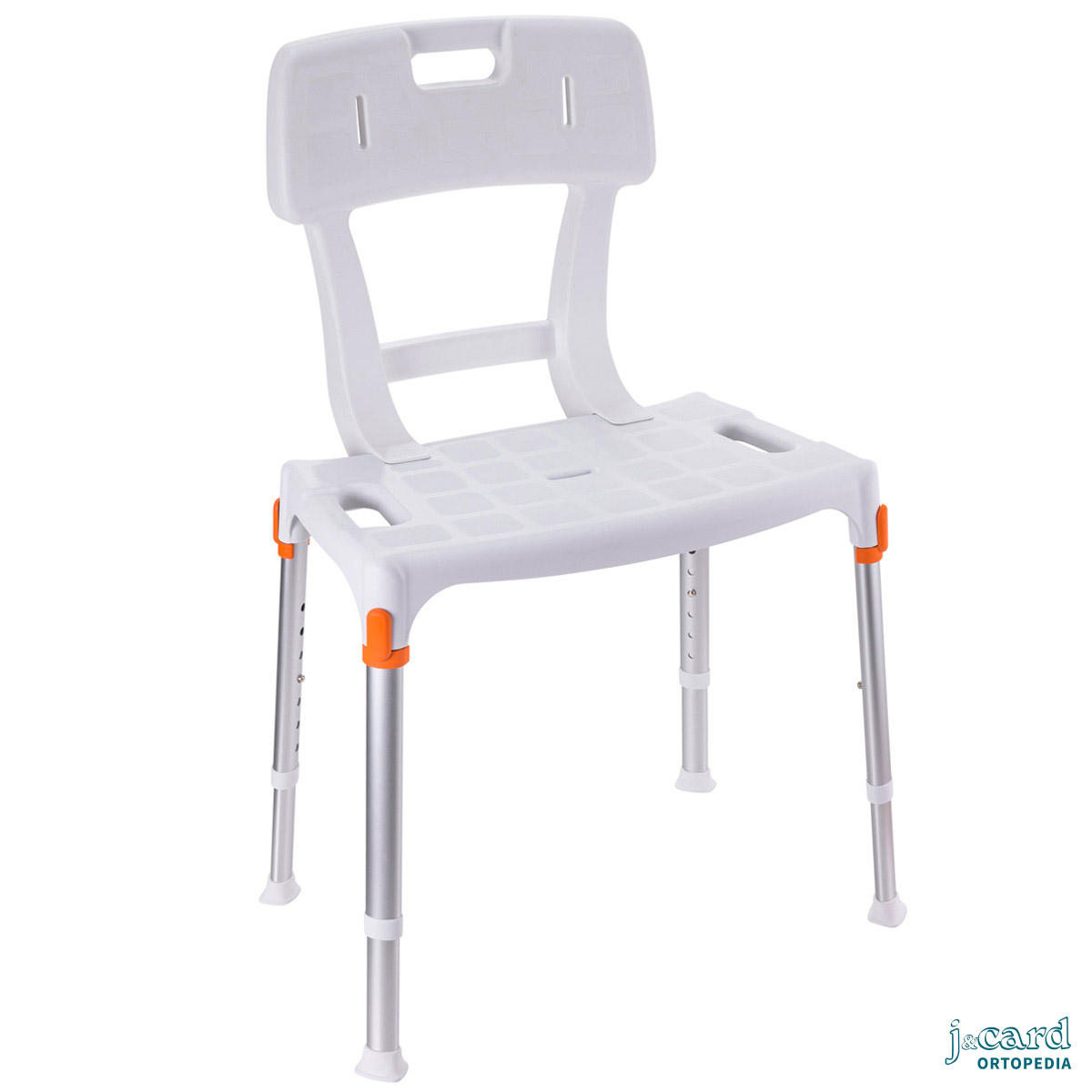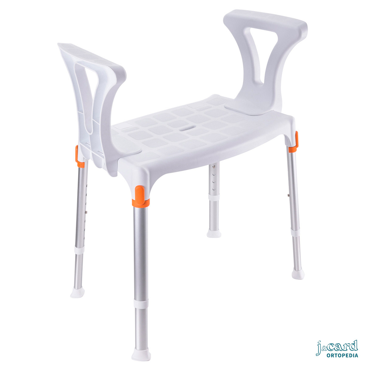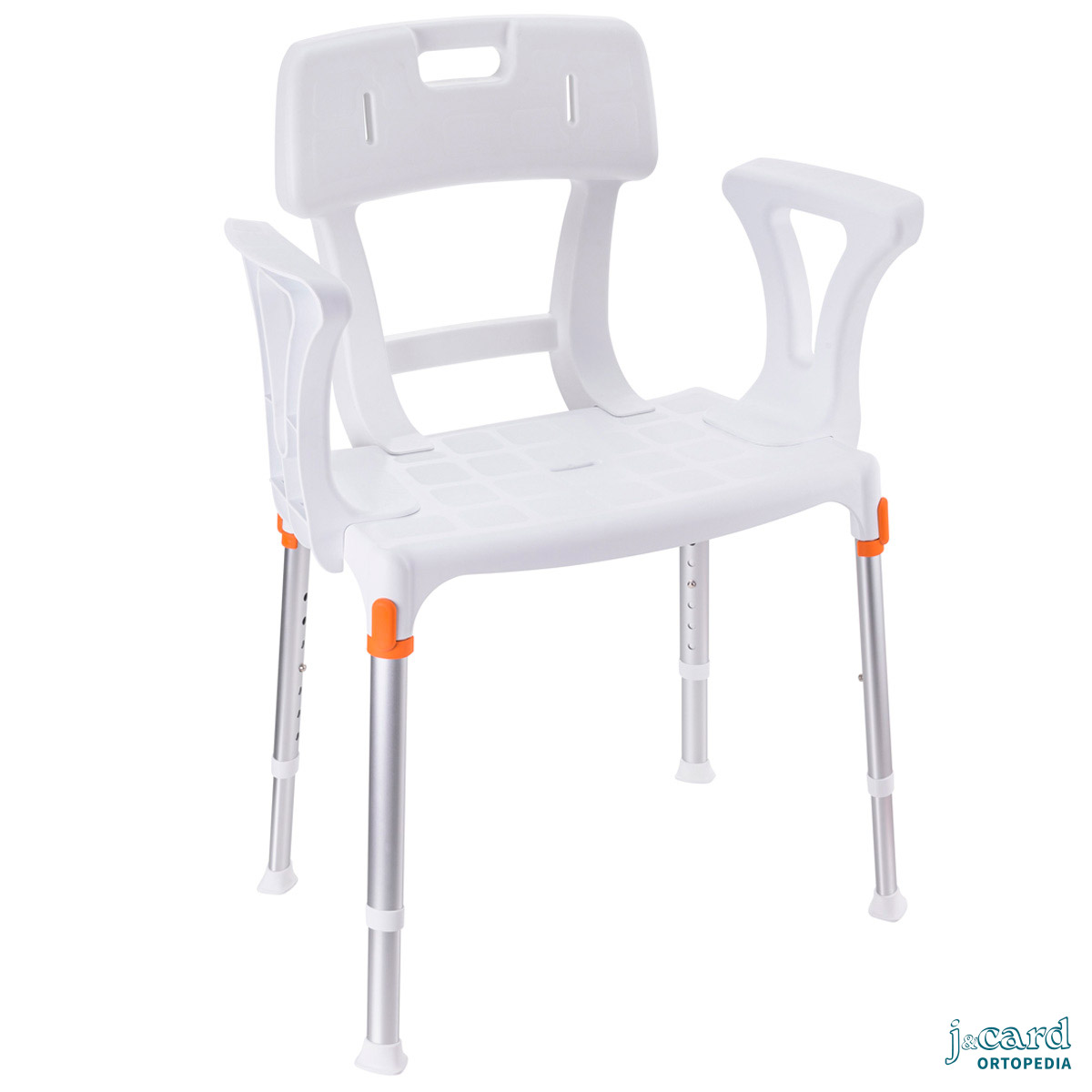 Silla de ducha fabricada en aluminio, resistente y totalmente inoxidable. Muy ligera y fácil de maniobrar. Pensada para facilitar las tareas de higiene personal: se puede colocar directamente encima del inodoro o bien utilizar la cubeta (opcional).