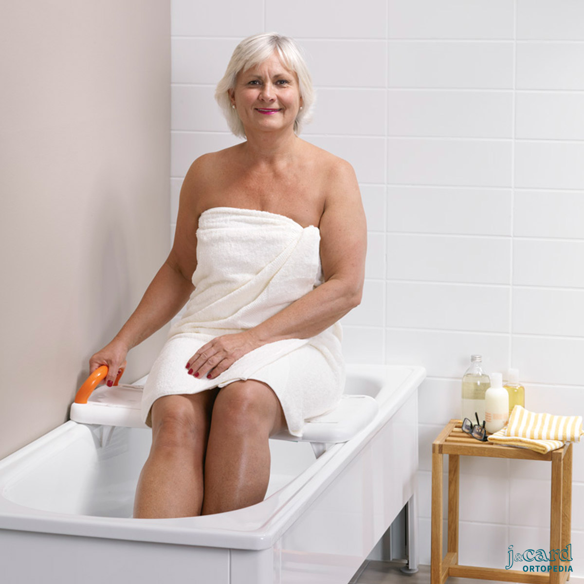 El elevador Bath Master permite sentarse cómodamente a la altura del borde de la bañera y descender suavemente con solo pulsar un botón. Su asiento ergonómico y respaldo reclinable ofrecen gran confort. Ligero y fácil de transportar, se retira fácilmente para dejar la bañera libre tras su uso.