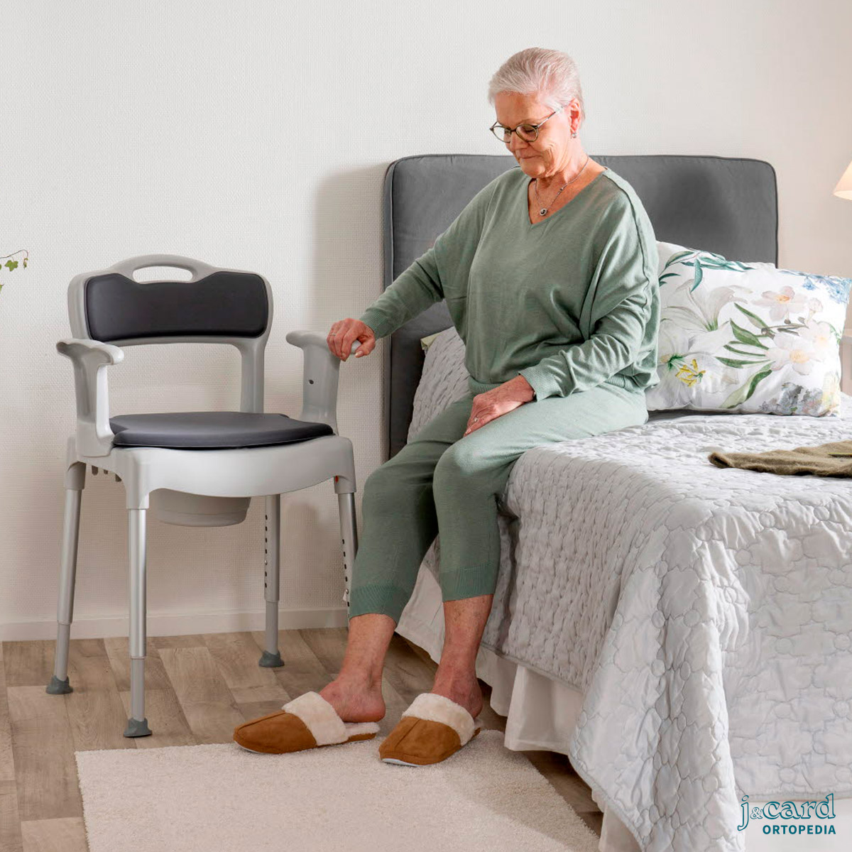 Banqueta estable y robusta con asideros integrados, fabricada en aluminio y plástico. Totalmente inoxidable, ligera y fácil de transportar. Su asiento de altura regulable permite adaptarla a las necesidades de cada usuario, ofreciendo comodidad, seguridad y estabilidad en el baño o la ducha.