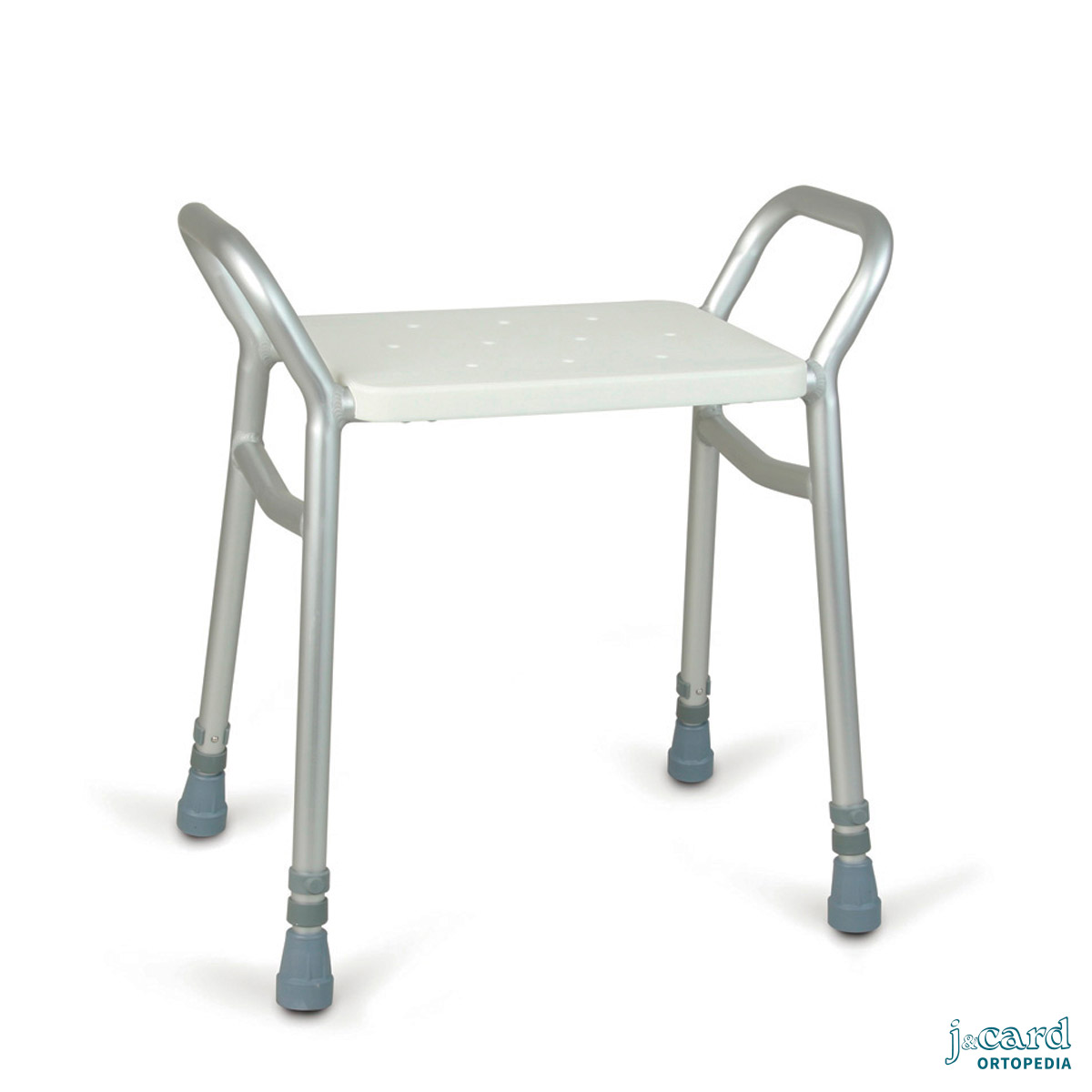 Banqueta estable y robusta con asideros integrados, fabricada en aluminio y plástico. Totalmente inoxidable, ligera y fácil de transportar. Su asiento de altura regulable permite adaptarla a las necesidades de cada usuario, ofreciendo comodidad, seguridad y estabilidad en el baño o la ducha.