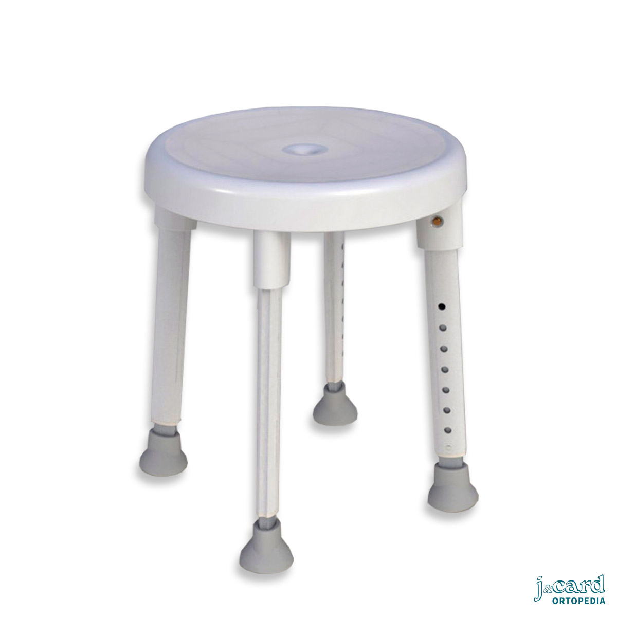 Taburete de ducha inoxidable con asiento giratorio que facilita la movilidad y el acceso durante el aseo. Dispone de patas de aluminio regulables en altura y una repisa inferior para esponjas, jabones o el teléfono de la ducha. Desmontable sin herramientas, ofrece comodidad, seguridad y fácil mantenimiento.